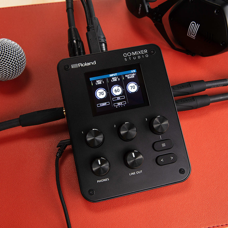 Mezclador e interfaz de audio de bolsillo para dispositivos móviles. Múltiples entradas para conectar micrófonos, instrumentos musicales y más...